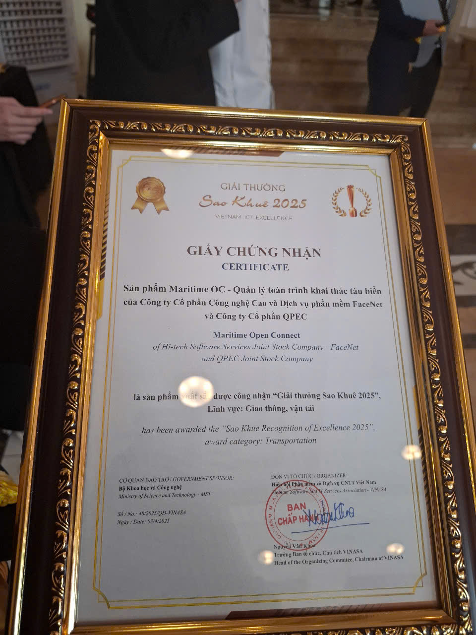 We are thrilled to celebrate an incredible milestone as QPEC, in cooperated with FaceNet, proudly receive the Sao Khue Award 2025 for Outstanding Software Solution in the Transportation Sector with our groundbreaking platform – Maritime OC.